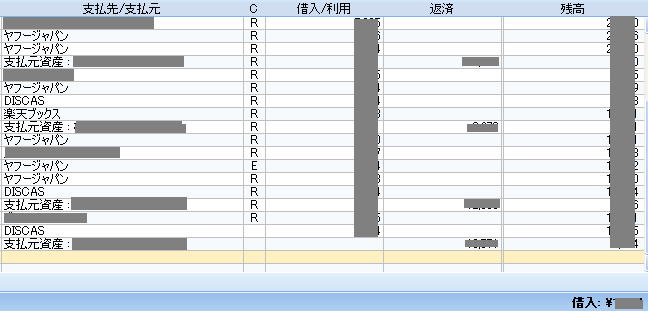 返済日が来るまでは、一番下に「借入」として、使った金額の合計が表示されています。